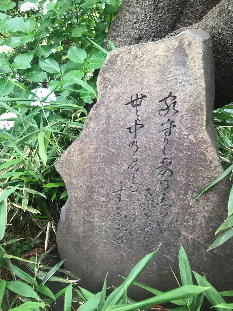 夫人の名前を元にスエコザサと言う和名を残しています。またこの二句を詠んでいます。この歌碑の周りにもスエコザサが植えられています。