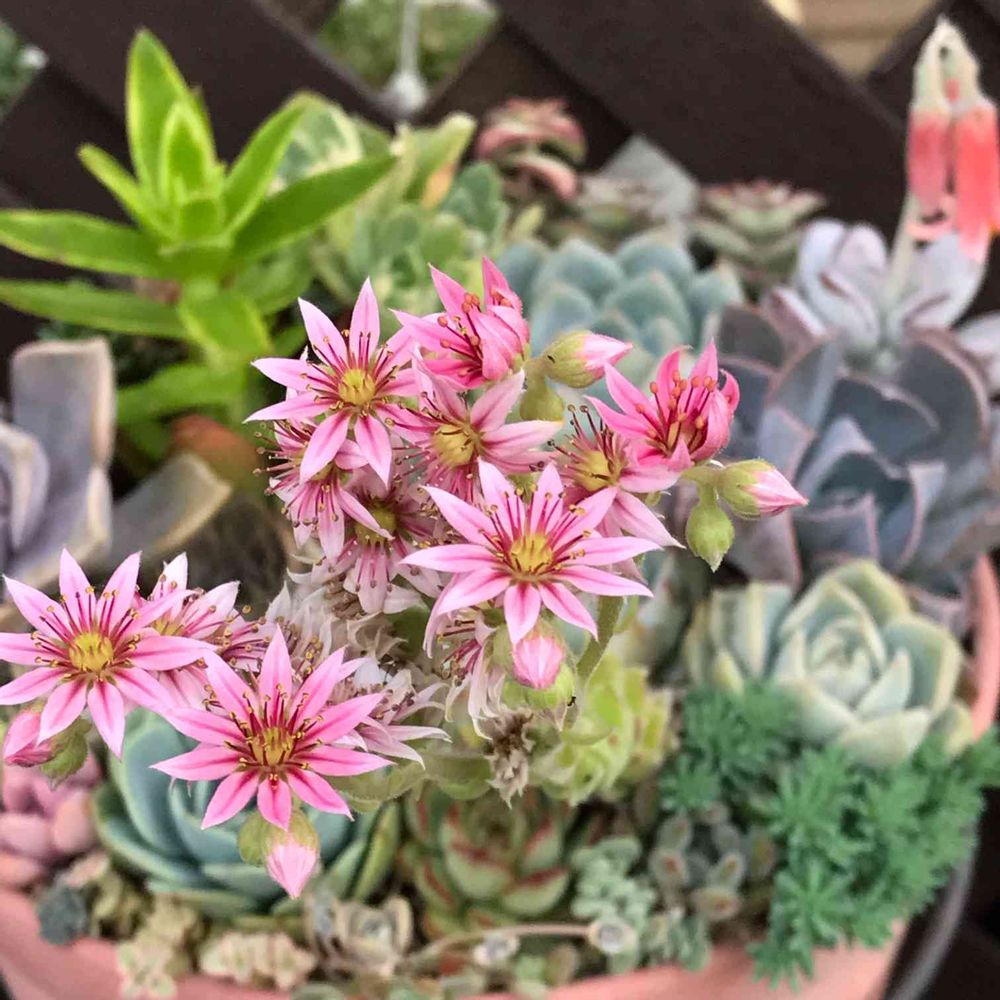 多肉植物,多肉寄せ植え,センペルビウムのお花の投稿画像