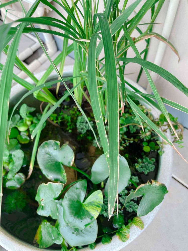 金魚の稚魚の為に始めたビオトープ🌿そして、子供達の教育にも良いかなぁ〜とポチりしてみた稲🌾😂ビオトープの景観の殆どを稲が占めてしまい、うーんって感じですが、とりあえず秋まで見守ってみます!