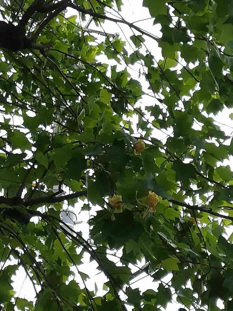 街路樹でお馴染みのユリノキ..花が咲くんです。大きな木の上の方にチューリップみたいな可愛いらしい花をつけるんです..近所の街路樹ですが花が咲くの初めて気がつきました☺️
