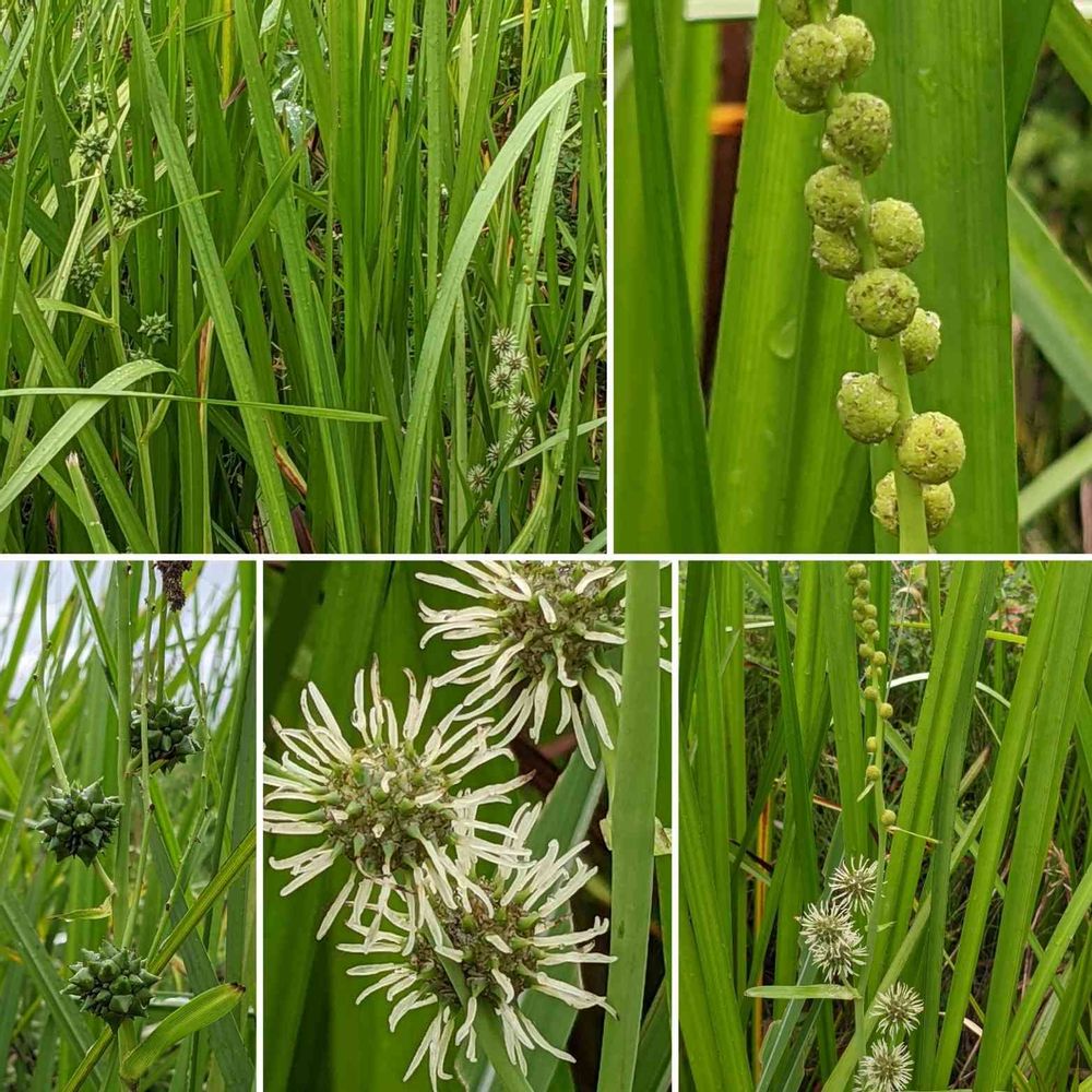田んぼ沿いの湿地に自生するミクリの雄花、雌花、クリのイガイガのような球形の果実を見ることが出来ました🟡⚪🟢