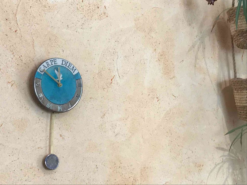 ローマで見つけた手作りの振り子時計 ラテン語で「今日を摘め」つまり今を生きて、と書かれてます。 とても気に入って今日キッチンに付けてもらいました。イタリアの思い出🇮🇹