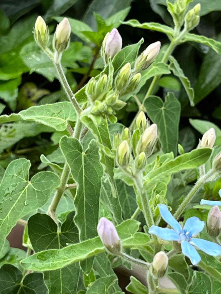 ピンクの蕾からブルーのスター形のお花、素敵ですネ❣️