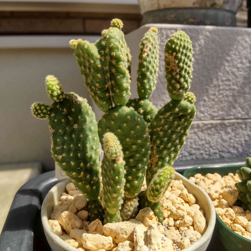 キンエボシ🌵前pic2022年1月24日。屋外に出してから元気になりました。うさ耳🐰みたいで気に入って購入しましたが、小さいのがコブみたいに出てきています。