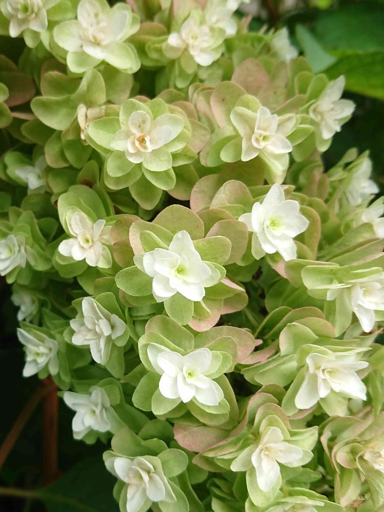 今お散歩道、こんなカシワバアジサイさんがたくさんです。(*ฅ́˘ฅ̀*)🎶