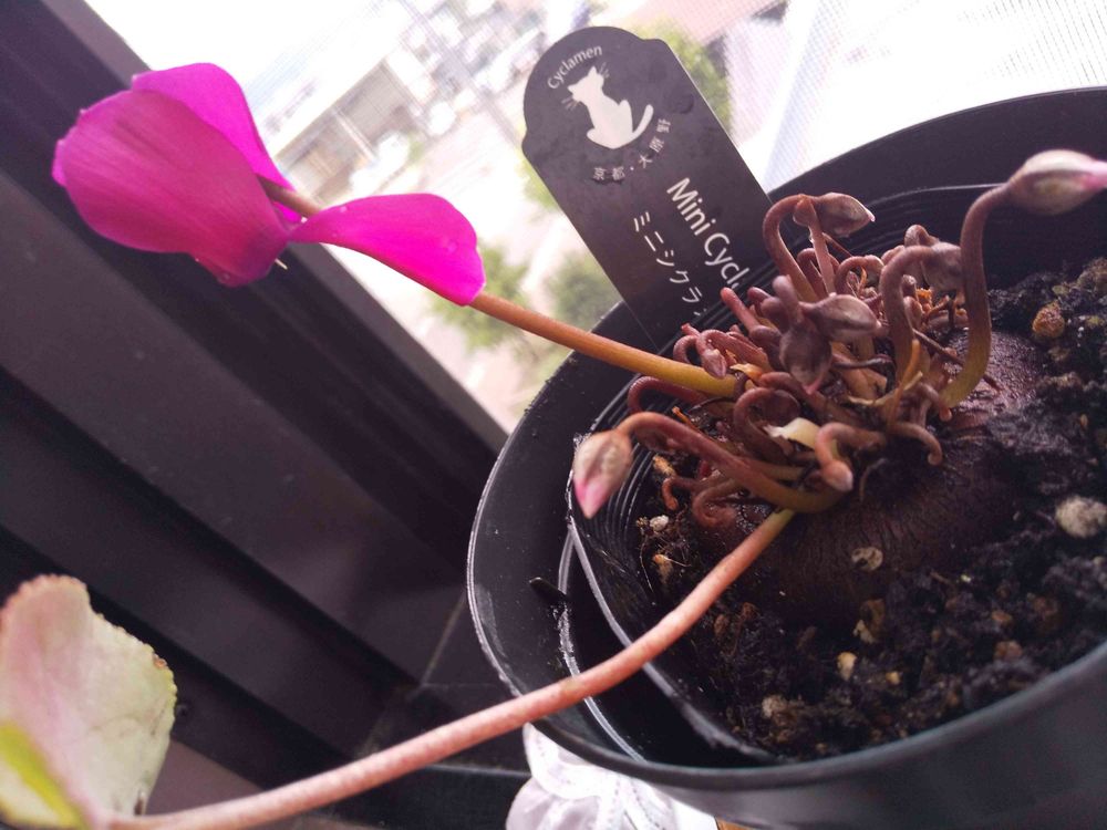 昨年冬のミニシクラメン…いまごろ咲くなんて…ねぇ…!!🙋🏻♀️😲😳😲😣