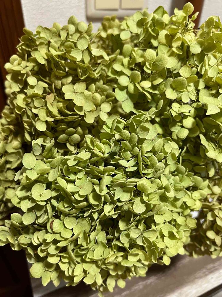 白のアナベルもそのままにしとくと、茶色になるので、切って日の当たらないところでドライフラワーにすると、緑のままカサカサになります♬︎♡