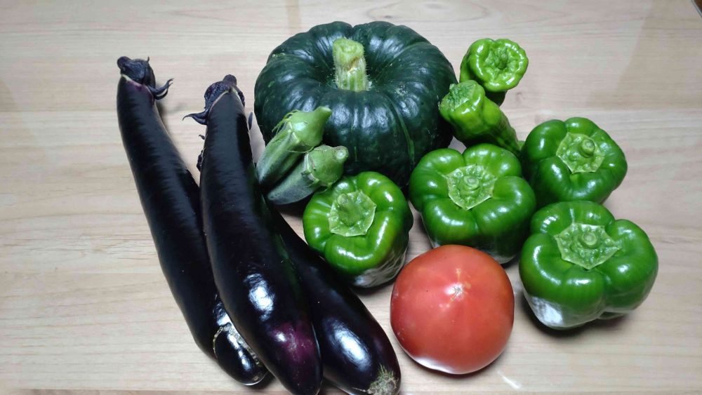 ピッカピカの採れたて野菜🍆🫑🍅美味しそう(^^)/ わが家もようやく昨日からキュウリとピーマンとズッキーニちゃん収穫開始🙌