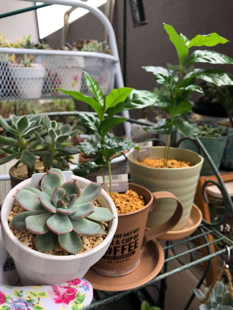 さつきフラワーさんでお迎えした子たちは頑張ってくれてるよ~😅 グリーンエメラルドがバラバラになりかけてるけど、めちゃくちゃ葉っぱが取れやすいから、取れたのを葉挿ししまくってるから大量発生してる〜🤣🤣🤣