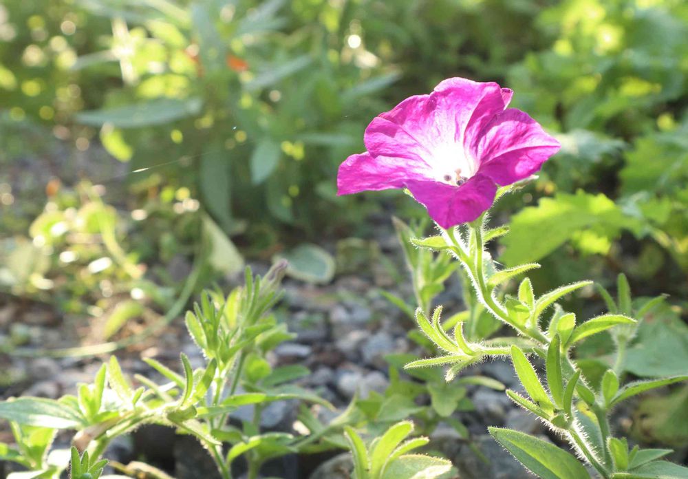 地植えのように現れて石で囲っただけの即席花壇に。朝日を浴びて育ってます♡何年も前に育てたミリオンベル⁈