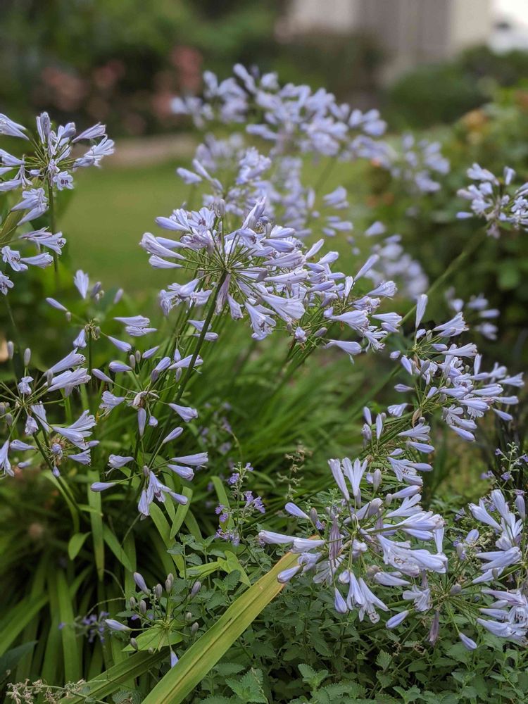 暑い中涼しげに咲いているアガパンサス🌿昨年より花も増えて嬉しいなぁ