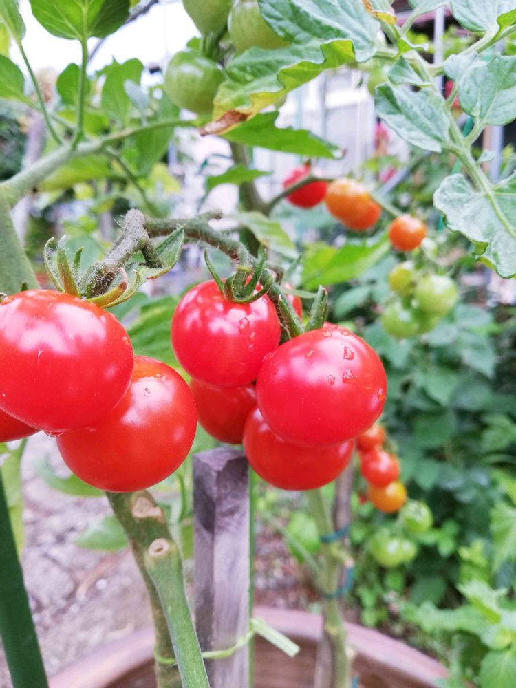 ウチも毎年ミニトマト🍅を作っていて大抵は雨にあたると割れていましたので今年は陽のあたる軒下に入れてアイコを育てています