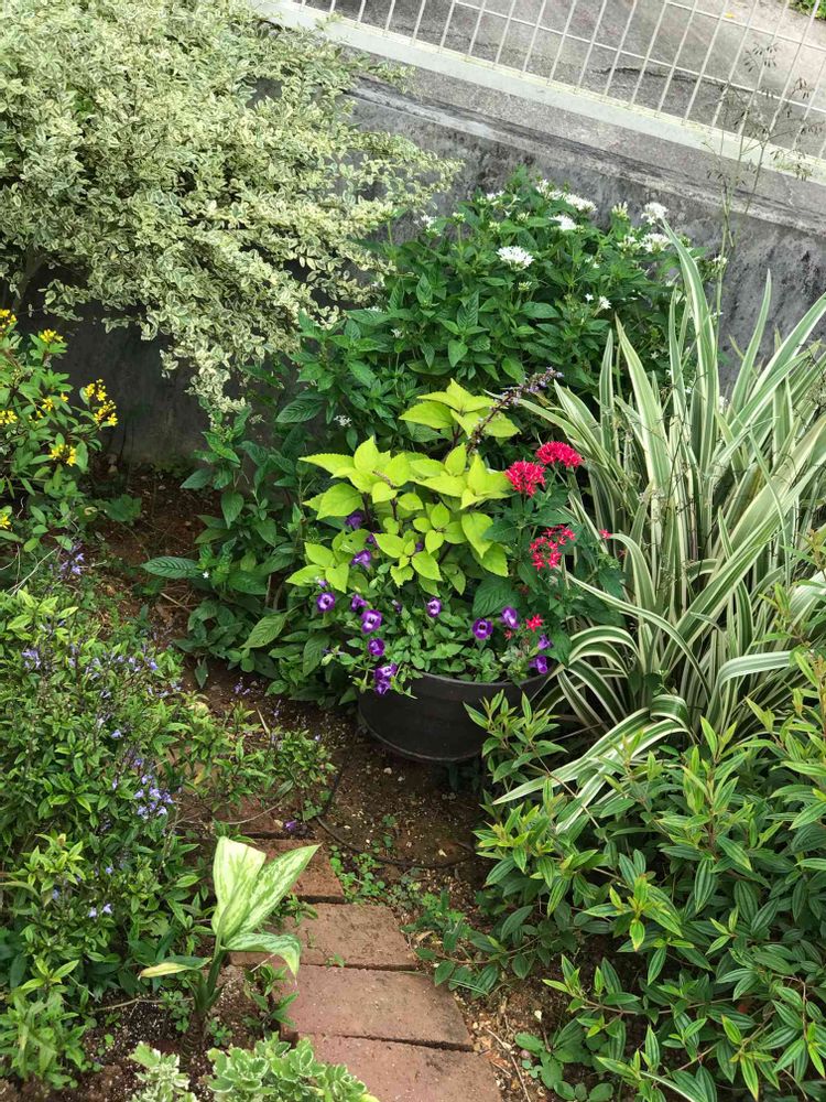 お花は少ないですが、斑入り桔梗ランとライムグリーンのコリウスにがいい仕事してます。😊