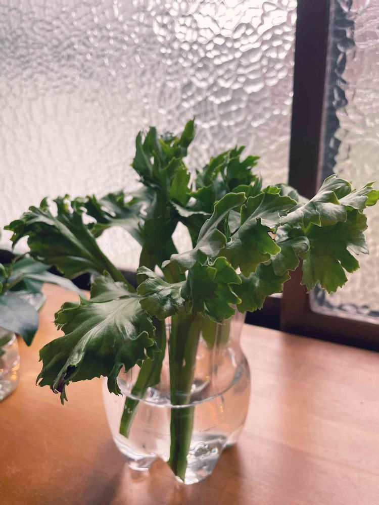 散髪したので、切った葉を水につけてみてるけど…とってもげんき!