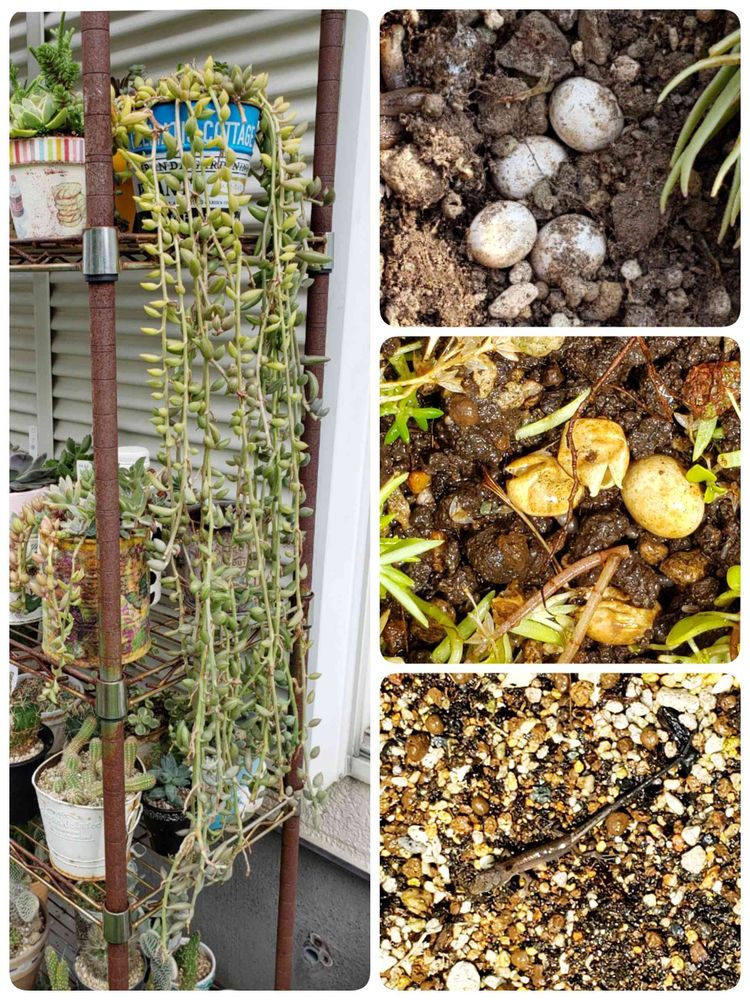 ↗️6月20日に、花壇の中のわさわさセダムを整理していたら、何かの卵🥚を4つ発見しました❗👀
