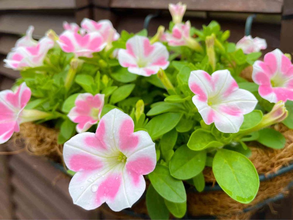 ハンギングバスケットに挿し芽した🌱サフィニアももいろハート💕