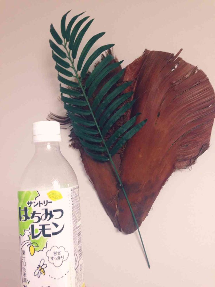 椰子の皮、フェイクの葉っぱを添えてみました❣️