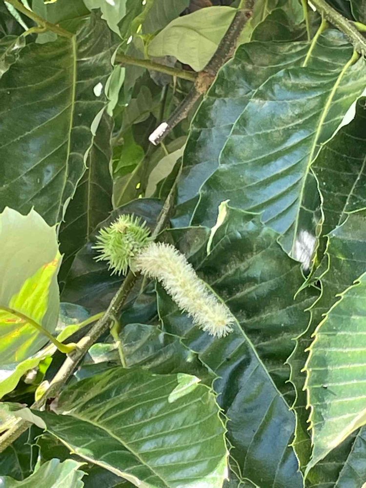 先日、どなたかが投稿されてたのを見て栗の木を見に。カワイイ実が花の根元に。