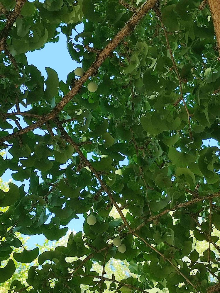 昨年、一昨年実っていなかった銀杏が今年は大きな実がたわわに揺れています。