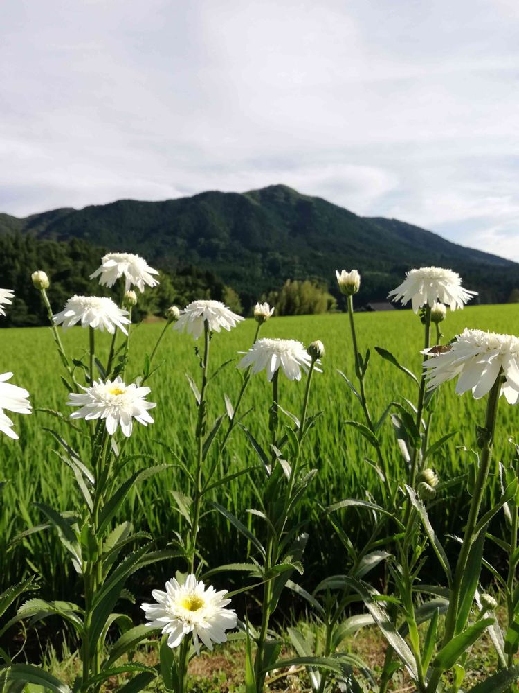 山と田んぼと花と
