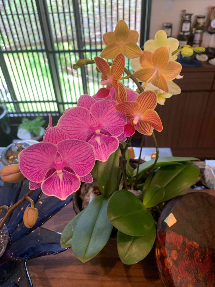 調べていたら、ミディコチョウランのミックスという、色の違う花の寄せ植えがありました。