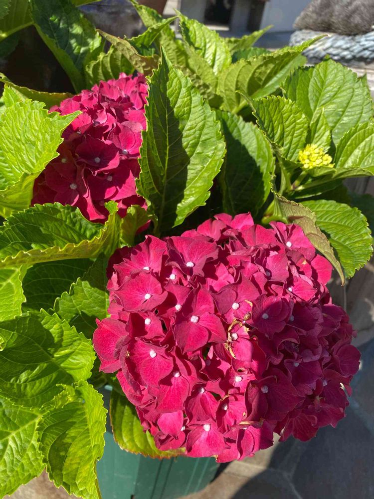 紫陽花ホットレッドも元気に咲いてます😄玄関先に置いてますが華やかになります✨