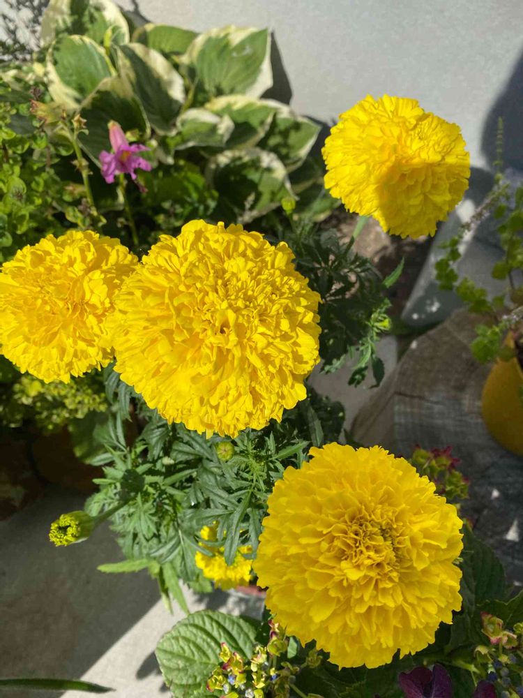 息子のアフリカンマリーゴールドもたくさん咲いてきましたよ♪種とれるかしら?来年もまたお顔見たいなぁ💕