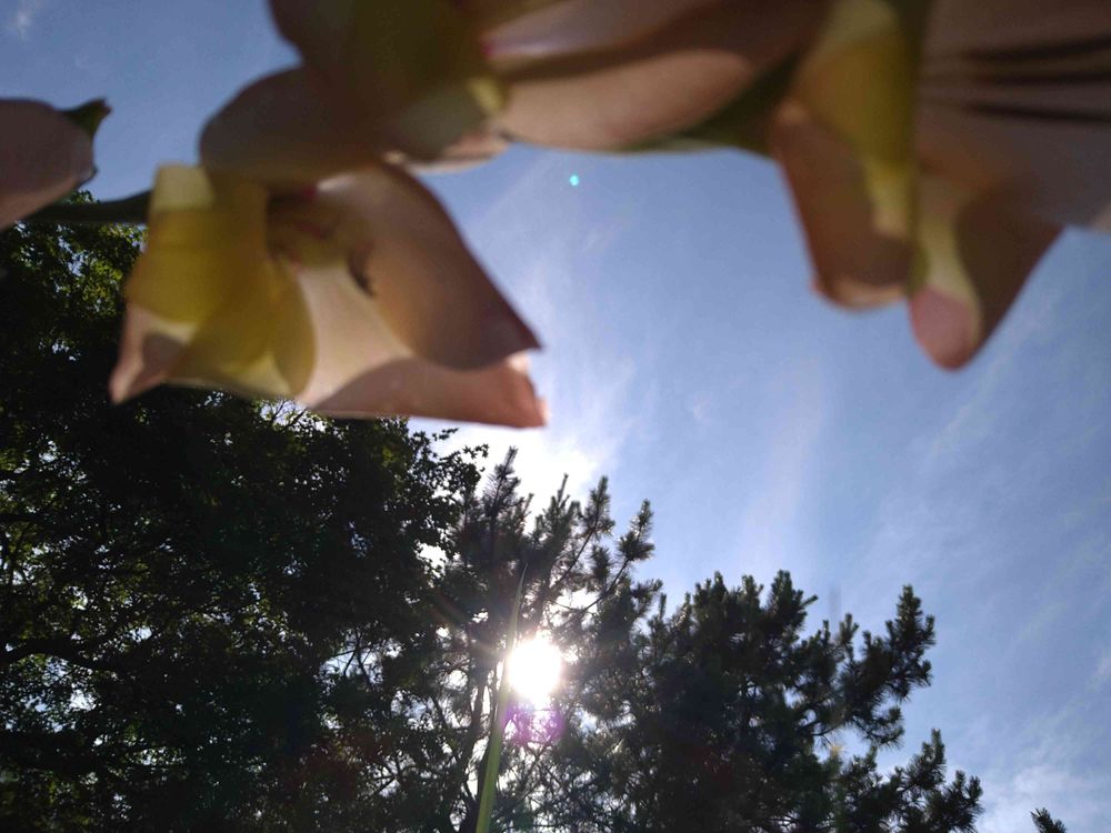 地上20センチ位で横になっているグラジオラスさん