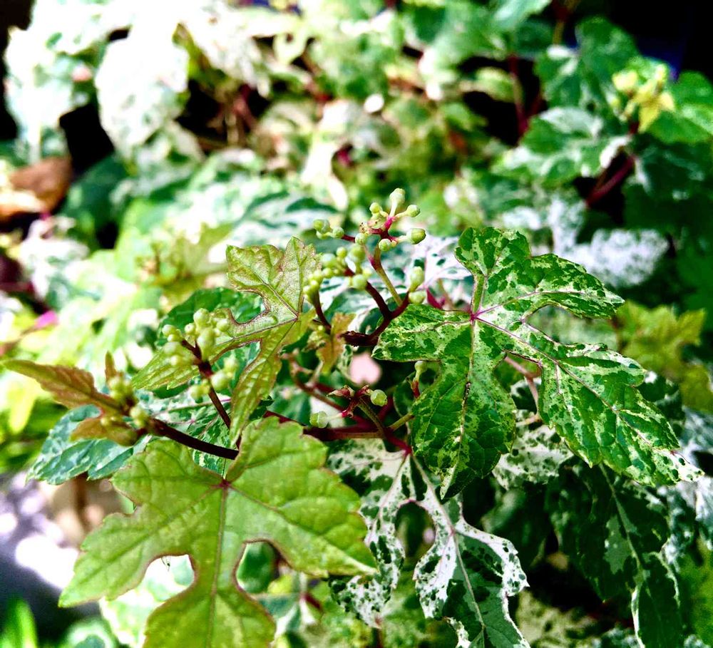 五色の実が目当てで招聘した野葡萄。なかなかツボミがつかずヤキモキしましたが、コレは花?