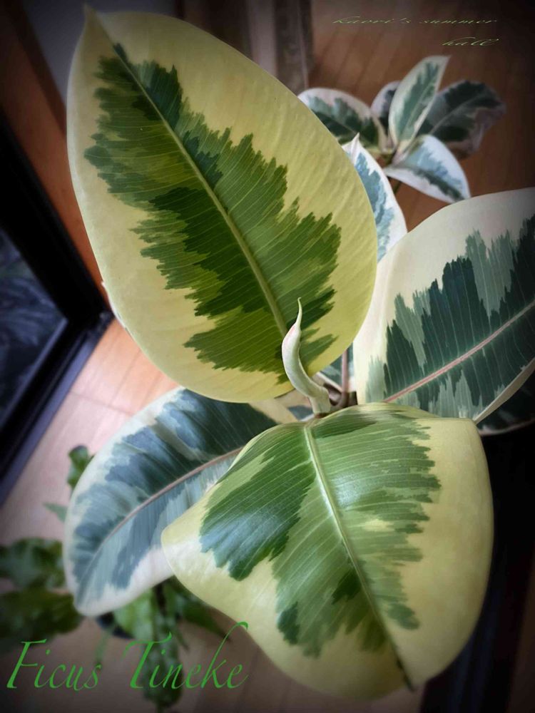 うちにもいるよー、このフィカス。でも緑の部分が多いような気がする💦 なんでも新しいって、いいよねー。新しい服、新しい化粧品、新しい車…あ。あたし新車買ったのよ🚘