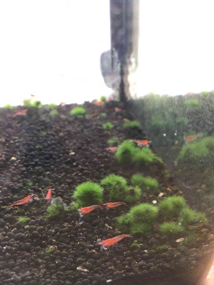 貝もいるんですが、その貝もマリモみたいになってて、エビがわしゃわしゃしてます❗️
