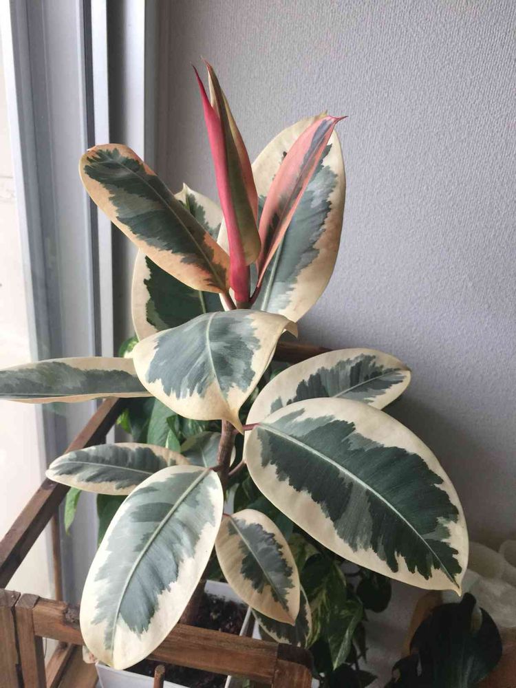2016年8月にうちにきてからゆっくり大きくなってるゴムの木くん😊