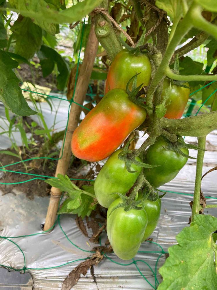 収量増えてきた調理用トマト。サンマルツァーノも間もなく収穫です。
