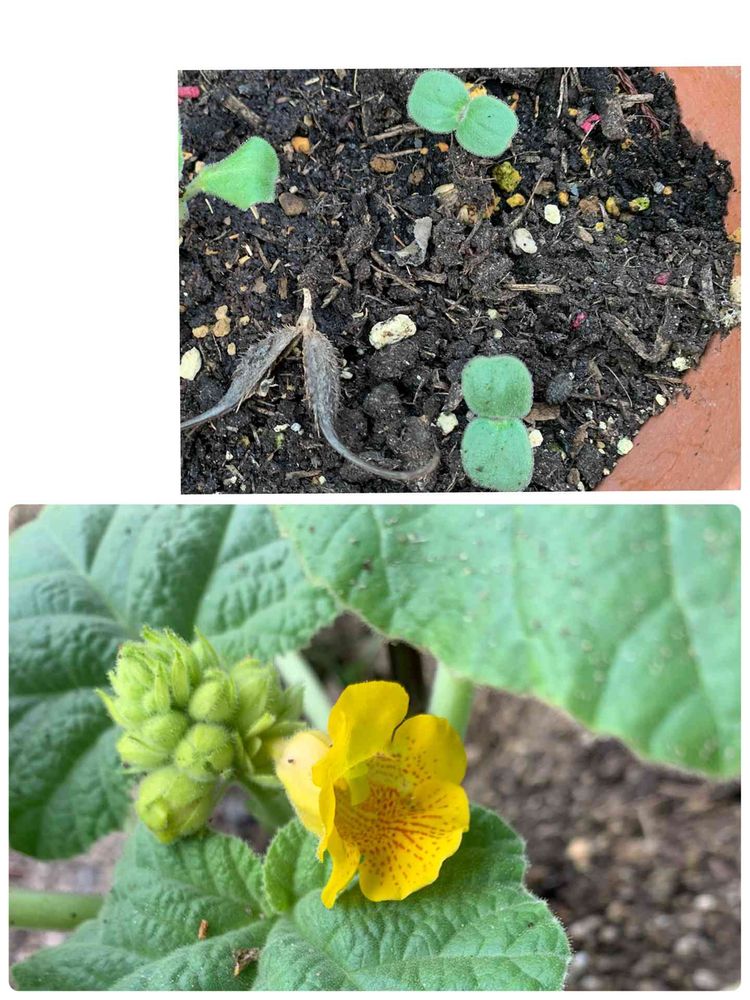 去年の花柄から種が3粒採れ芽が2つ出ました❣️
