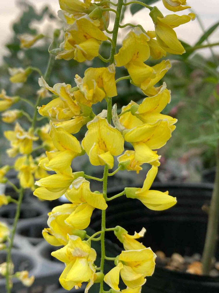 斜め上方に伸びた枝から20cmほどの花の房がいくつも垂れ下がるのが本来の姿ですが、枝が柔らかいのでフェンスやアーチに誘引して仕立てることもできます🤗🌼