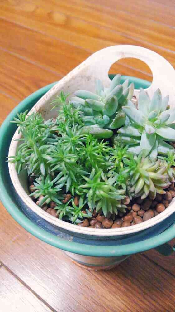 アクアテラポットが空いたので、寄せ植え。通常の土は室内では痛むので、チャコボールに変更✨