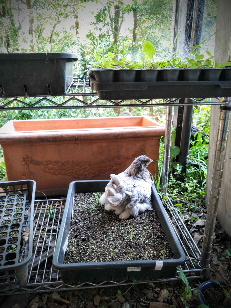 鶏達よく育苗トレーとかポット苗置いてるトレーの上歩くのよ💦