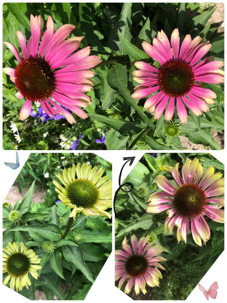 右下の色とうちのエキナセアさんそっくり(๑´ー`๑人๑´ー`๑)💚💗