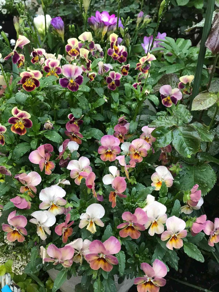お気に入りのビオラの奥にフリージアが咲き始めました。