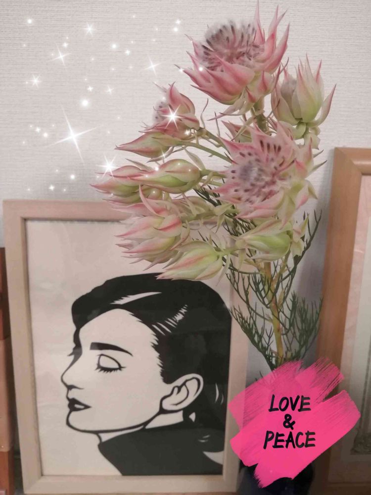 額の中のオードリーは月の雫ちゃんから頂いた切り絵 GSの繋がりに感謝🙏😘