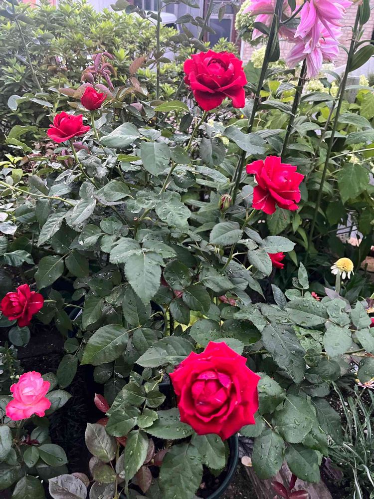 挿木の無名の真っ赤なバラの2番花は雨にも負けないでどんどん咲きます🌹✨