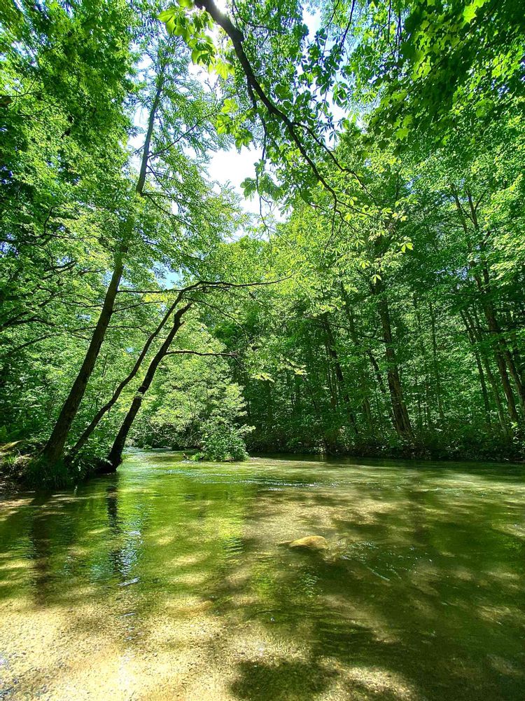 水際の樹木で🌳🌲水面に出来た木陰が美しいです👏