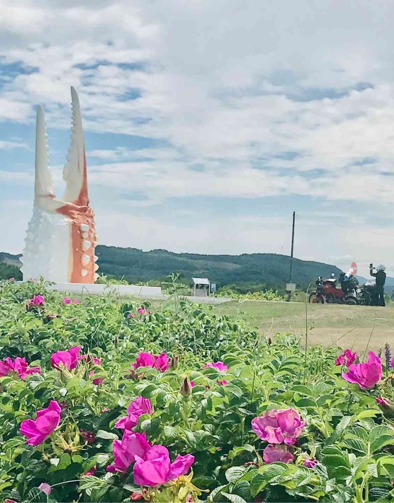 蟹の爪とハマナスの花、アンバランスで最高✌️💕