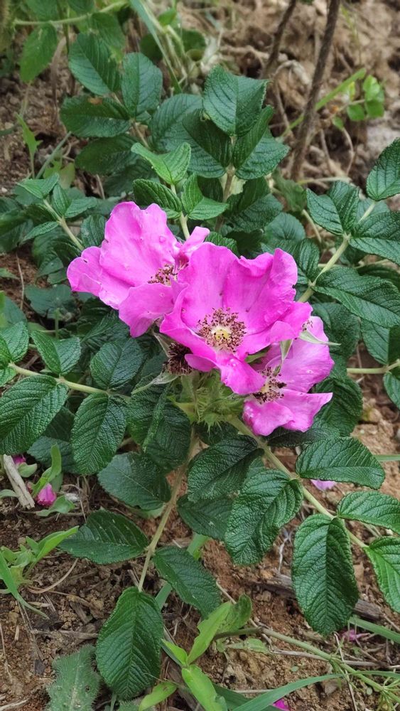 今日のお花 ハマナスが濃ピンクの花を咲かせています。