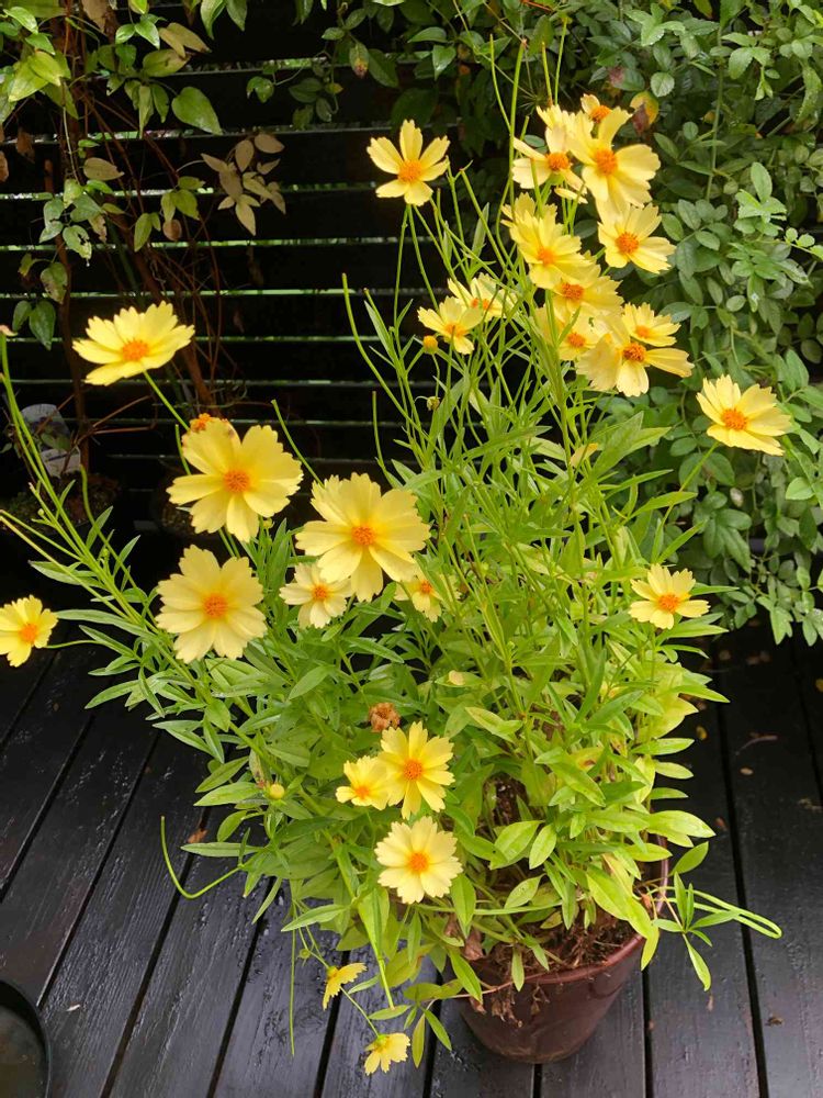 この花、昨年からの課題で、ウインターコスモスかコレオプシスか迷っています。夏に咲くウインターコスモス、変な名前です。よく似た外来種があるようで、それは増やしてはいけないそうです。