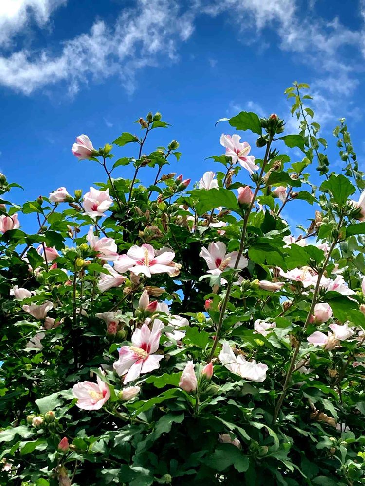 ムクゲでしょうか…たくさん咲いていてカワ(・∀・)イイ!!デス(☆▽☆)😍