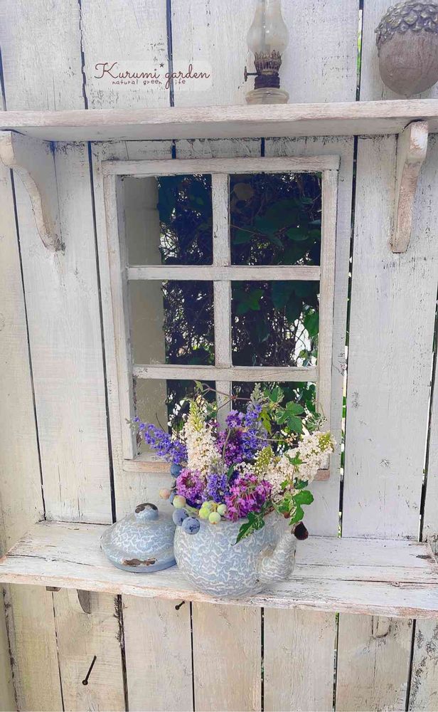 この小窓のある棚はくるみガーデンが活動始めた頃に知り合いに作ってもらったから4年くらい経つんよ💕