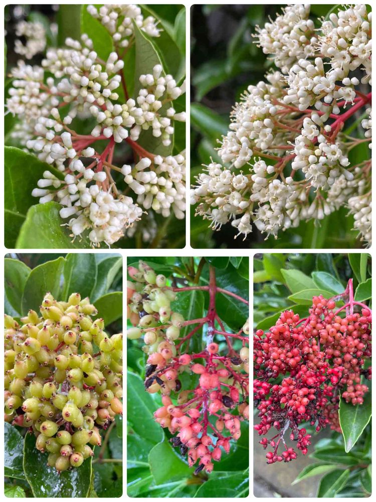 『珊瑚樹の蕾⚪️花⚪️実🟢🟠🔴🍃』