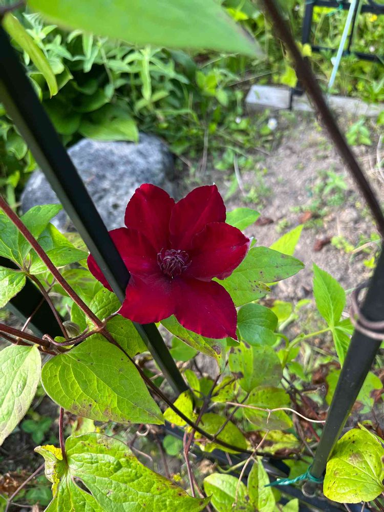 去年はこの色のクレマチスは咲かなかったような…。真っ赤に咲きました😁