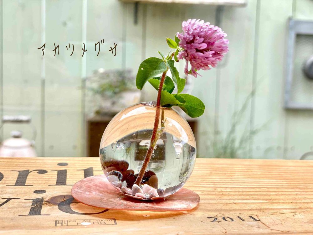 敷いてある物が上手く器に写り込んでるしアカツメグサの曲がり具合がまた良いわぁ😃👍